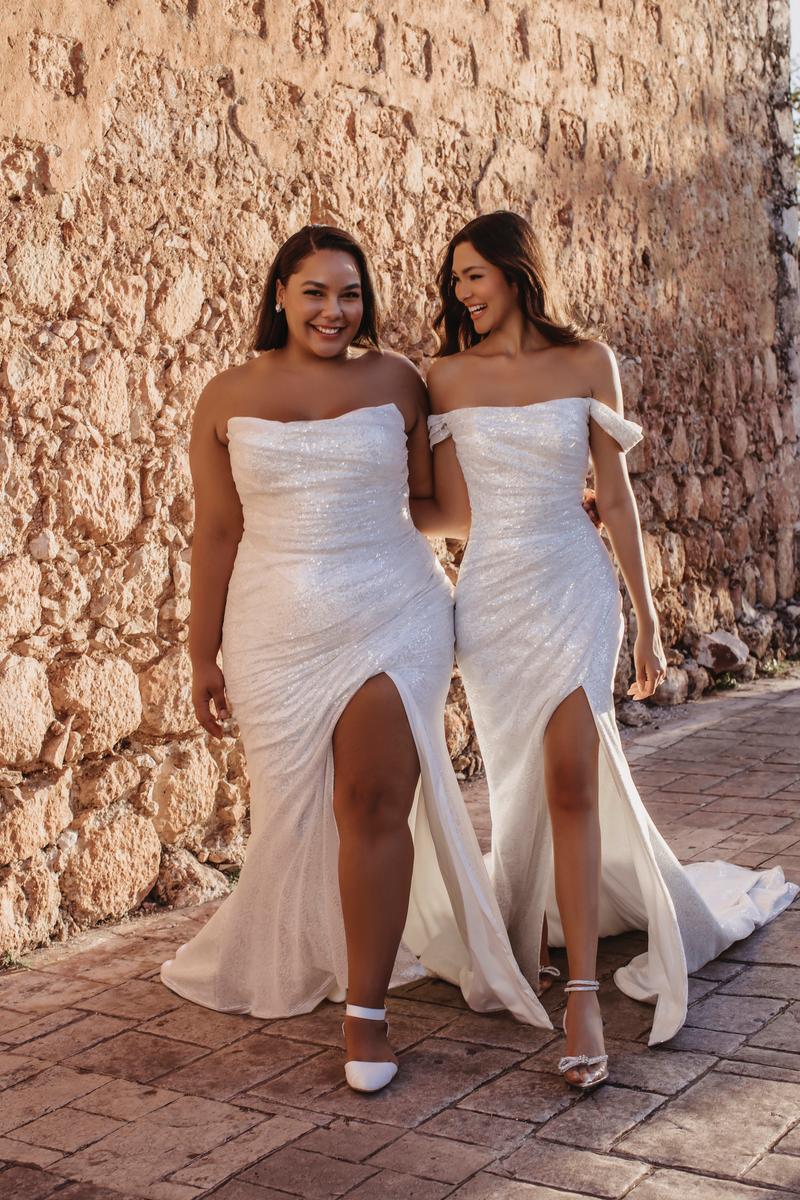Vestido entallado al cuerpo, las deslumbrantes lentejuelas y el resplandeciente tul le dan un toque glamuroso. Agregando tirantes desmontables en los hombros.